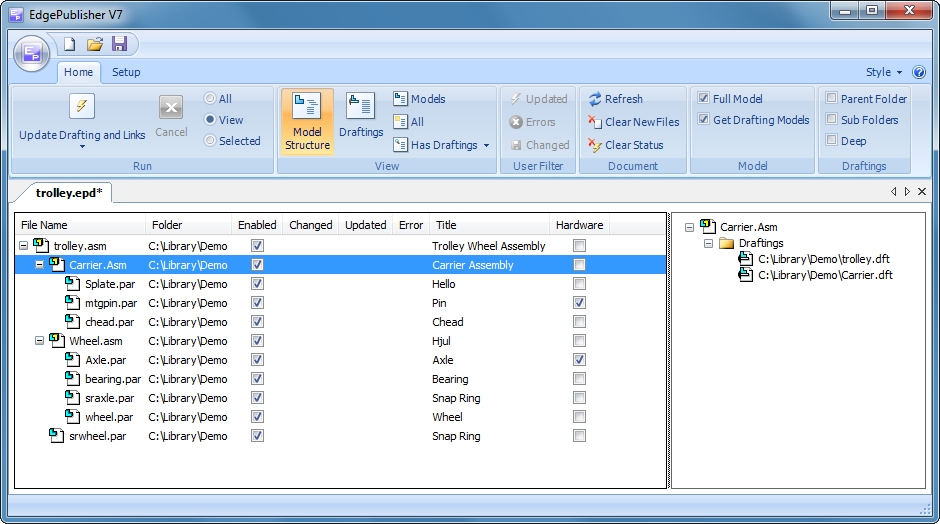 Edge Publisher is a unique, easy-to-use application for checking, updating and publishing Solid Edge files. With EdgePublisher you will immediately start saving hours of work, as time consuming and tedious routines can be automated into single click operations. Edge Publisher is a stand-alone application and requires no server products, PDM systems or similar.